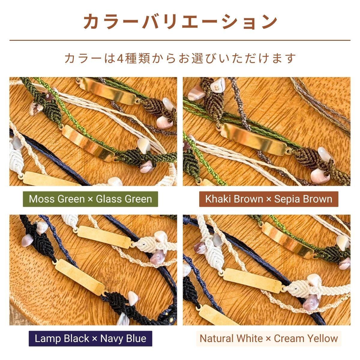 ・LINHASITA社製ワックスコードを使用しております。水や汗に強く比較的丈夫な素材ですが、使用に伴い色褪せ・色移り・ほつれ等の経年変化が生じます。