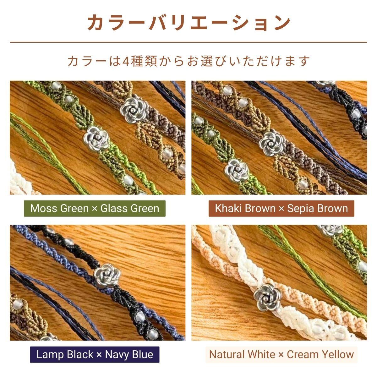 ・LINHASITA社製ワックスコードを使用しております。水や汗に強く比較的丈夫な素材ですが、使用に伴い色褪せ・色移り・ほつれ等の経年変化が生じます。