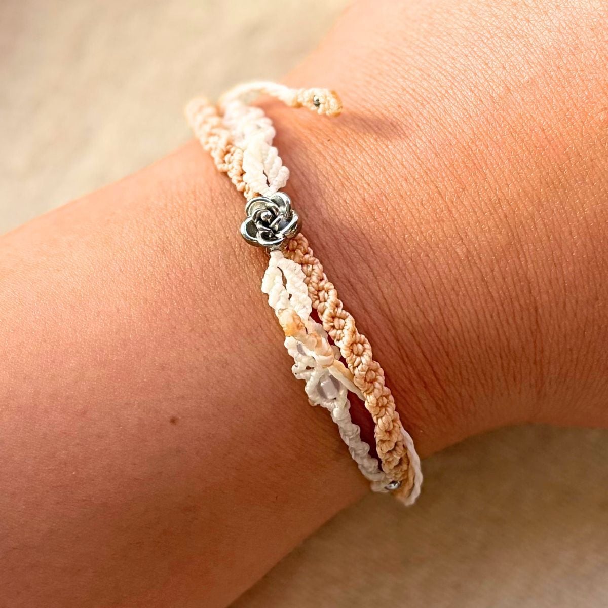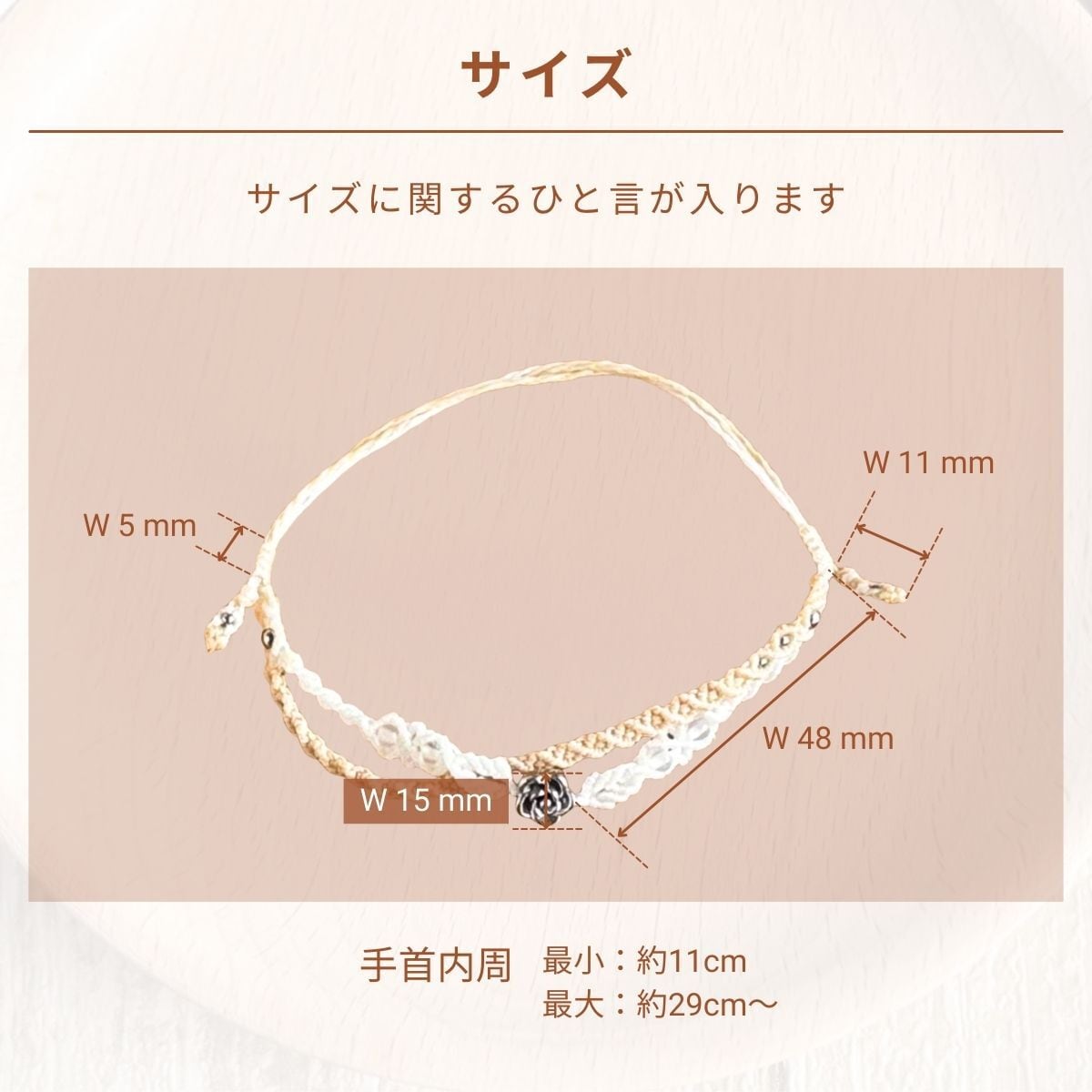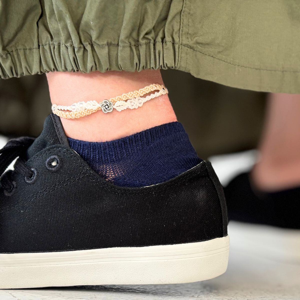 アジャスターを2個で設計しているため、手首への装着が難しい場面ではアンクレットとしてもお使いいただけます。