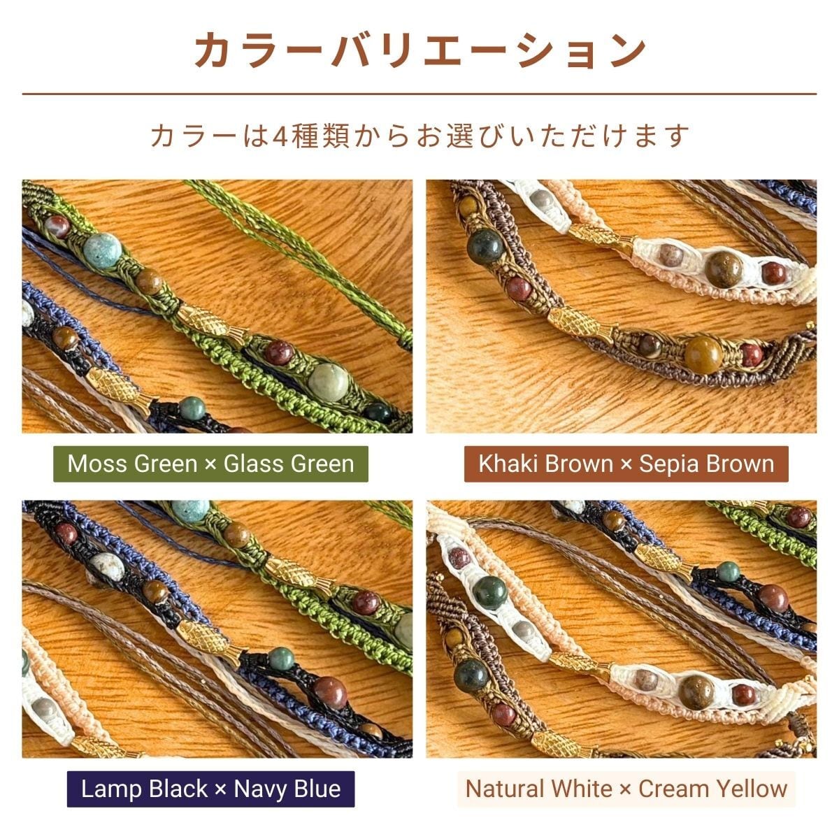 ・LINHASITA社製ワックスコードを使用しております。水や汗に強く比較的丈夫な素材ですが、使用に伴い色褪せ・色移り・ほつれ等の経年変化が生じます。