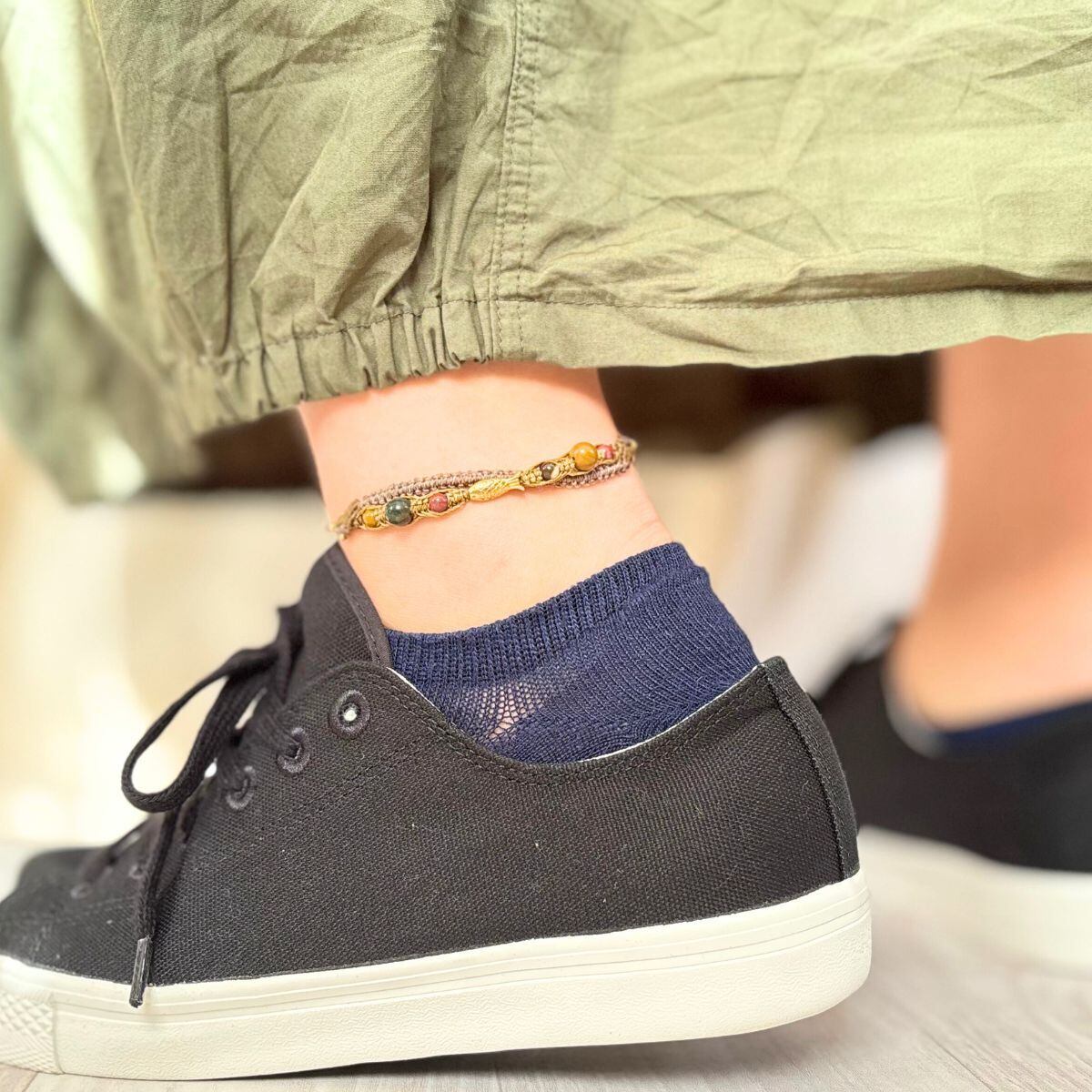 アジャスターを2個で設計しているため、手首への装着が難しい場面ではアンクレットとしてもお使いいただけます。