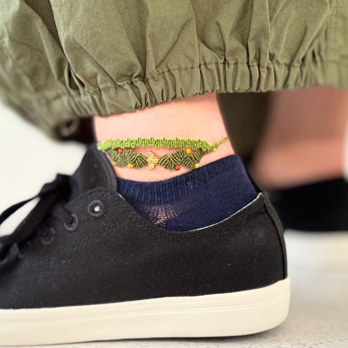 アジャスターを2個で設計しているため、手首への装着が難しい場面ではアンクレットとしてもお使いいただけます。