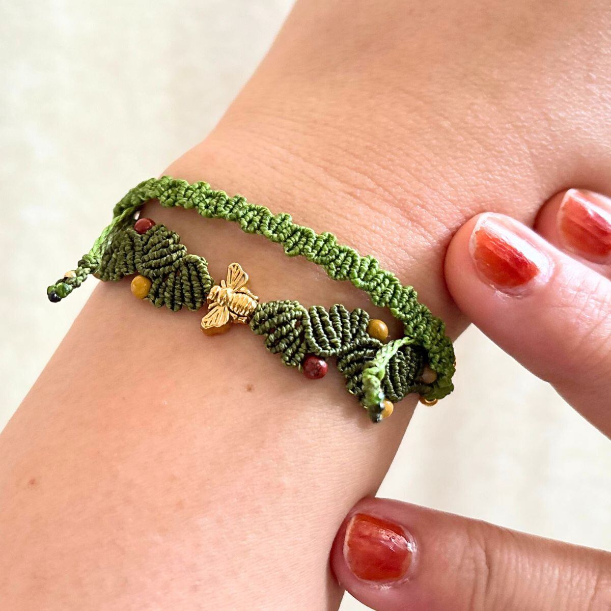 葉の編み目のあいだには、オーストラリア産3mmのムーアカイトジャスパーをあしらっています。