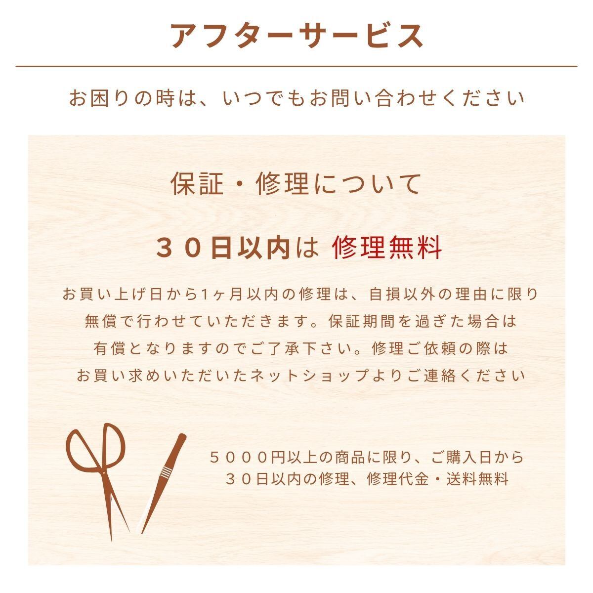 ・5000円以上の商品はお届け日より30日以内に発生した初期不良に限り、無償で修理対応いたします。