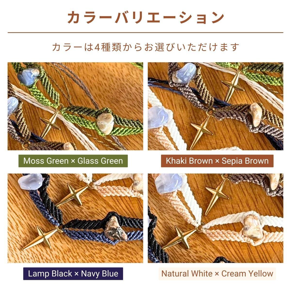 ・LINHASITA社製ワックスコードを使用しております。水や汗に強く比較的丈夫な素材ですが、使用に伴い色褪せ・色移り・ほつれ等の経年変化が生じます。